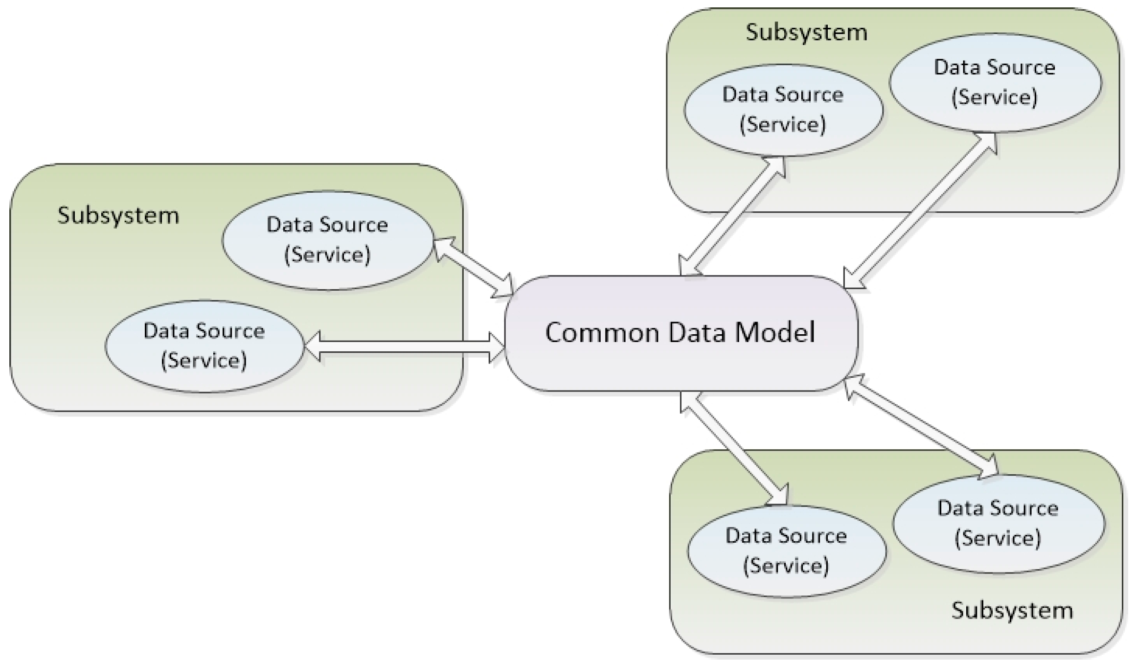 The Common Data Model uses a shared ontology with adaptation of the information provided by subsystems and services, as each of them can provide the information in their own ontology or even in their own format, which might be non-compliant with any ontology.