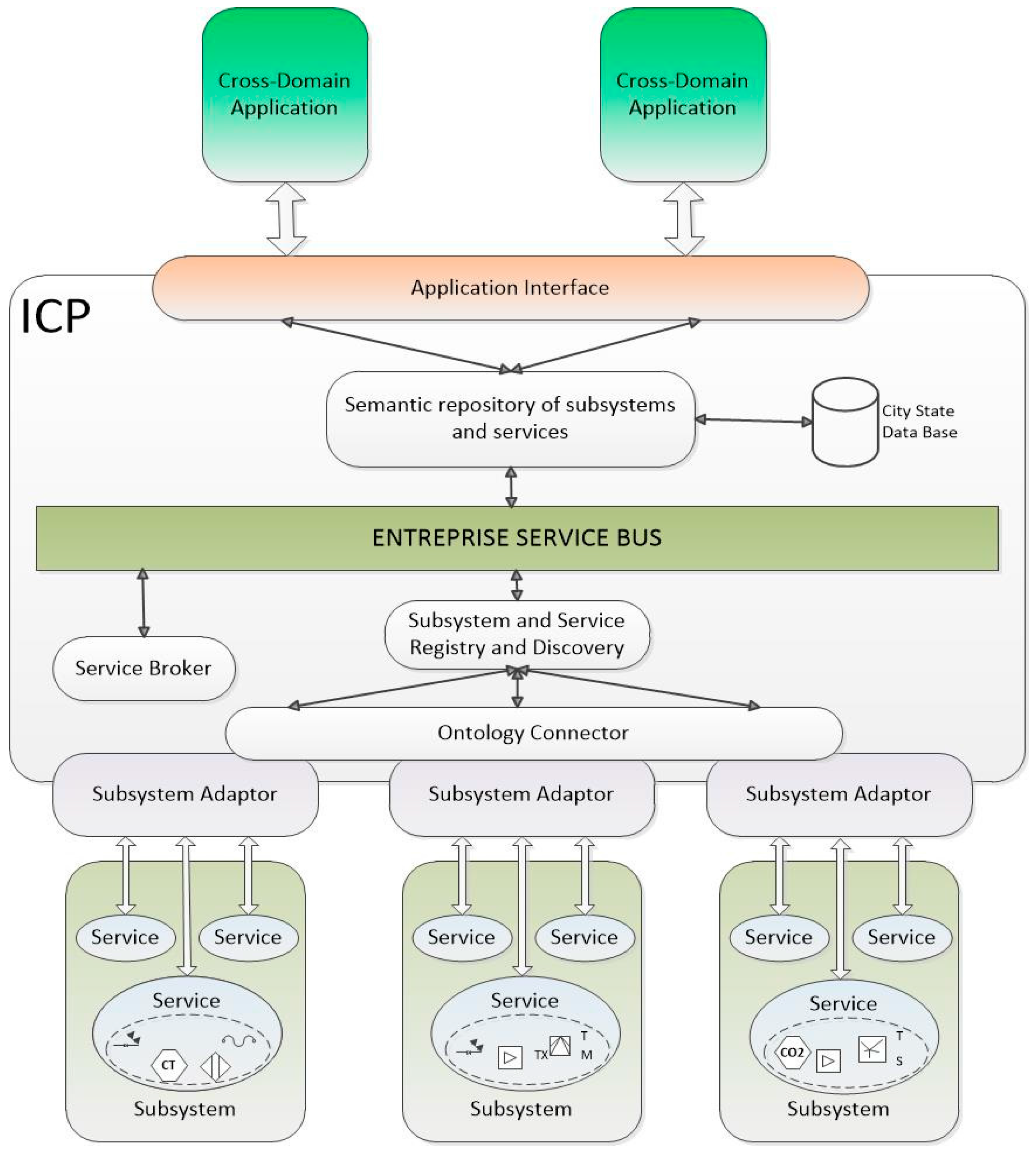 The ICP is capable of providing a variety of functionalities in order to optimize combined performance of different subsystems, thus achieving more flexible, more efficient and more robust integrated urban systems and managing different emergent behaviors. The platform is conceived as a distributed and layered architecture which offers three main groups of functions: