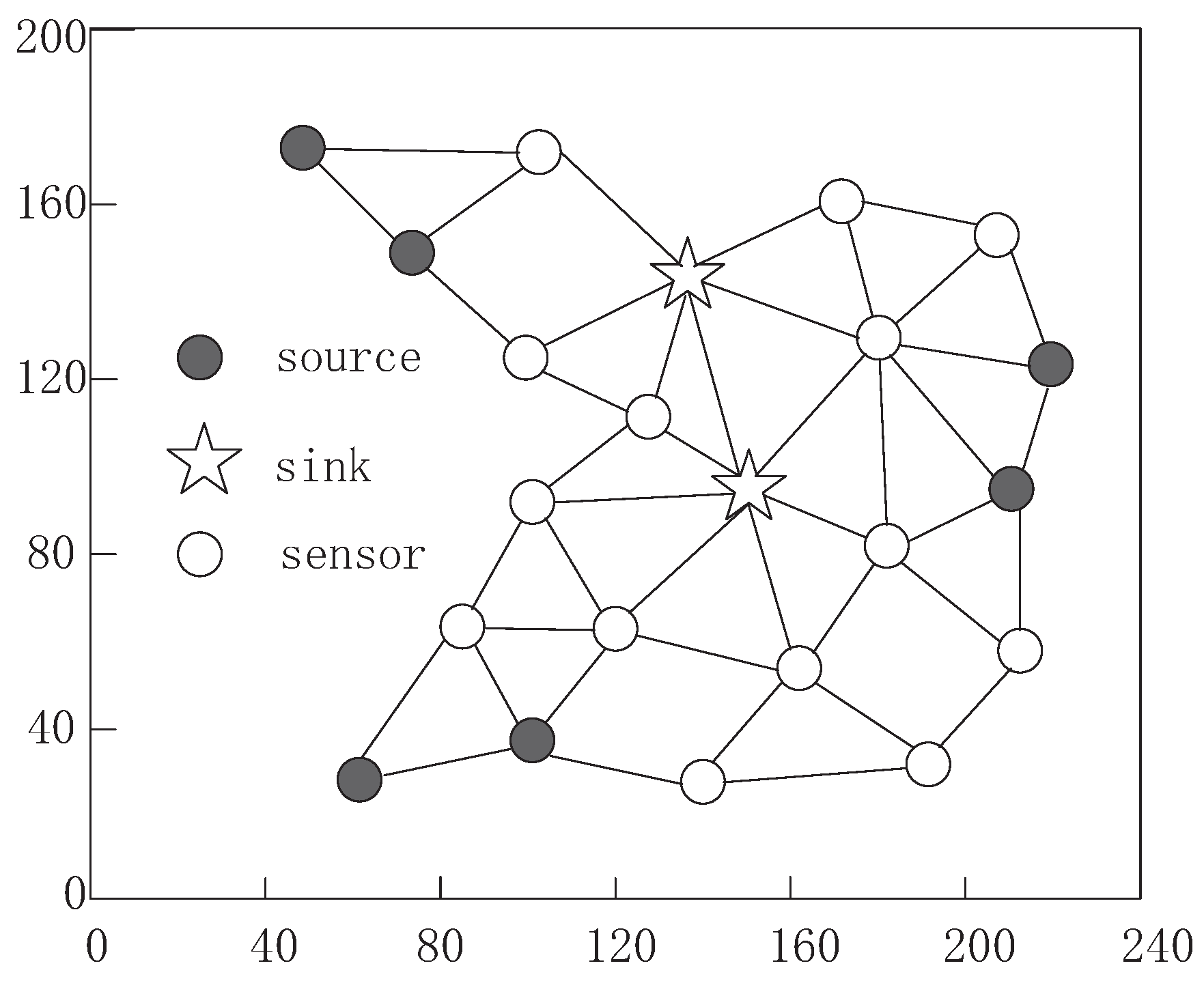 Due to available energy constrained, it is a common practice to deploy multiple sinks for collecting packets from all sources in realistic application, which means there are at least two advantages compared with just one sink. Firstly, in the multiple sinks scenario, since packets generated by sensors are only needed to be forwarded to any one sink, the degree of routing path from source node to sink will be shorted significantly. Secondly, a limited number of sensors are distributed around the sink and it often represents a bottleneck for data transmission because all packets from sources have to be forwarded to these sensors before reaching a destination, while it will relieve this pressure for data forwarding with more than one sink. These two strong points will save energy and improve data generation rate.