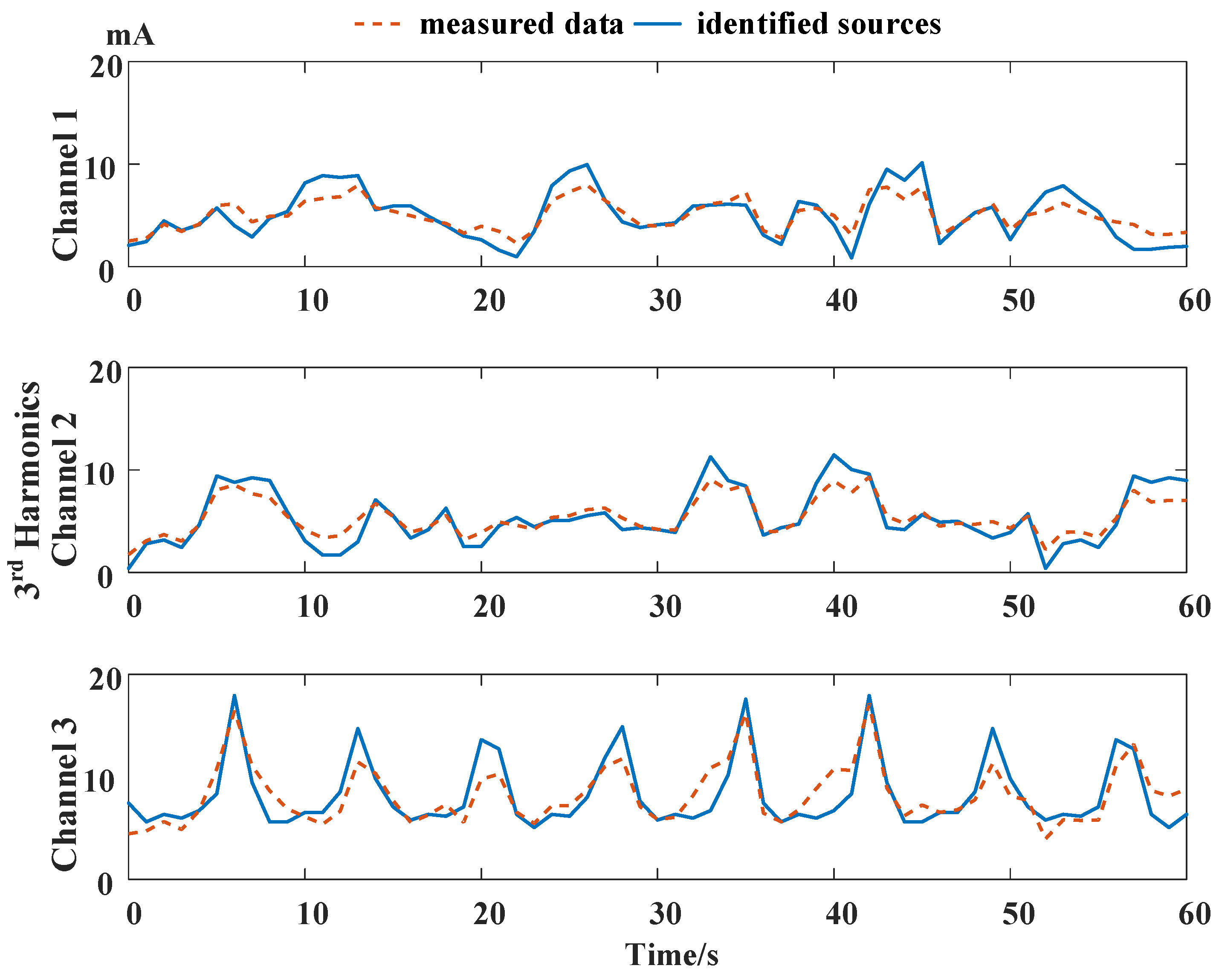 , containing M channels and T time points. , and N is the number of sources. is the measuring matrix, and is the distorted signal. The identification of the harmonic sources from the measurement data is a optimization problem of the following kind: