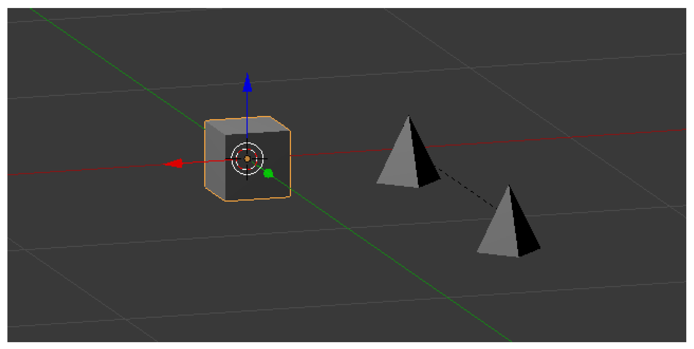 To control interactions between objects and the avatar’s skeleton easily, two elements called “gadgets” have been created: the “Accelerometer” and the “Rope” (see Figure 2). These gadgets can be used to measure distances and speed by attaching them to objects or body parts and thus avoiding complicated script programming. The “Accelerometer” is a simple cube that incorporates a Python script to measure the speed at which it is moving. The “Rope” has been developed to measure distances. It is composed of two tiny pyramids of the same physical type as the “Accelerometer”, which mark the ends of an imaginary elastic rope. The “Rope” could serve to detect handclapping, a foot stepping on a trap, or the wideness of arm stretching (with the two ends fixed for shoulder and hand).