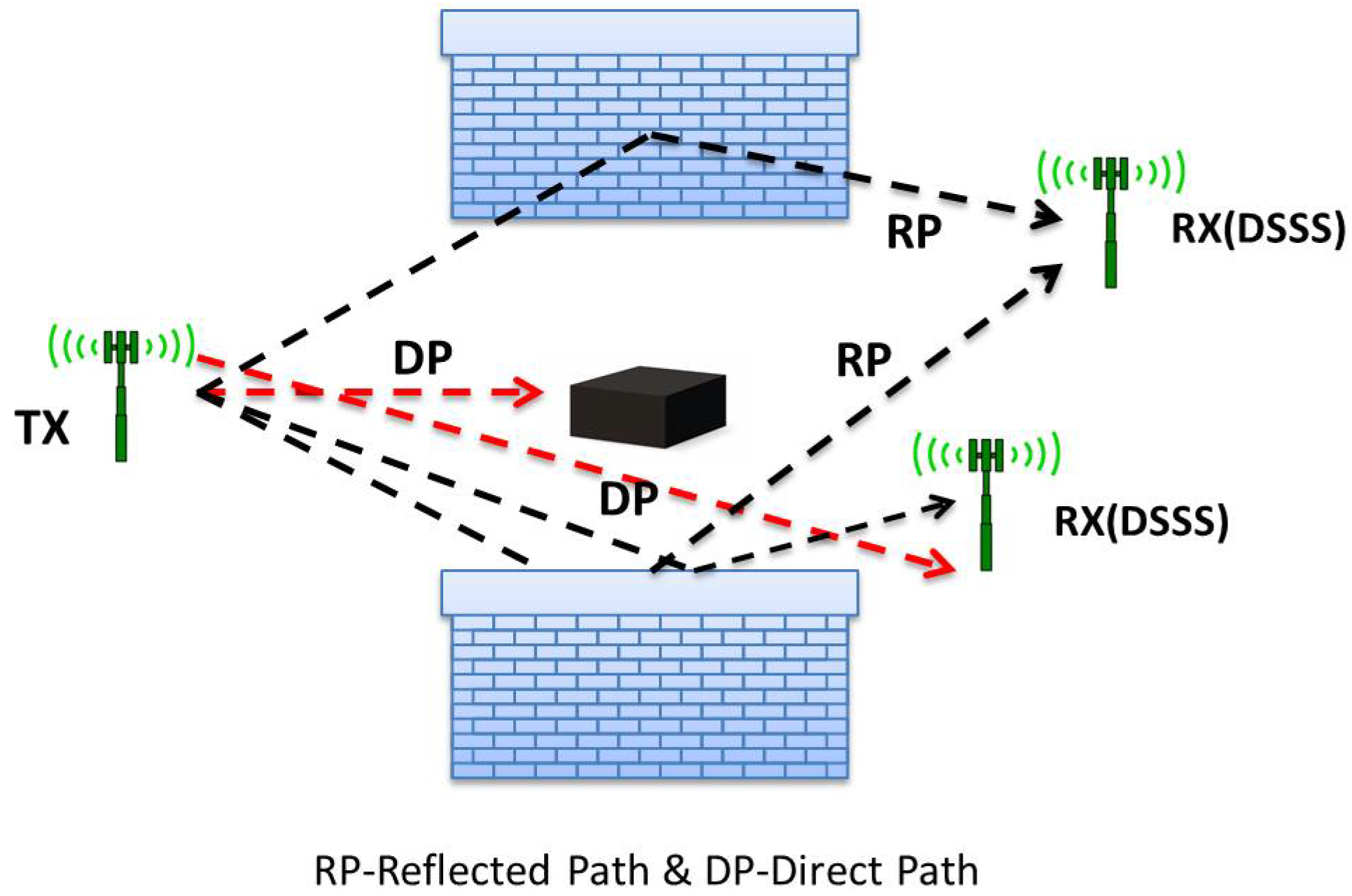 DLoS and DSSS scenarios for ToF ranging.