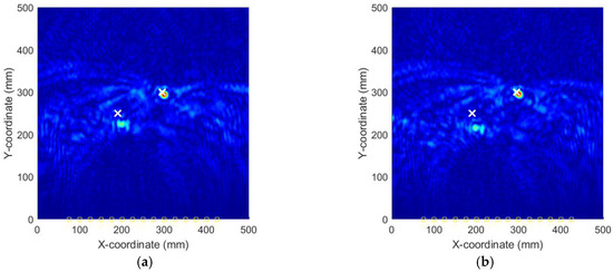 - Derveaux, G.; Papanicolaou, G.; Tsogka, C. Time reversal imaging for sensor networks with optimal compensation in time. J. Acoust. Soc. Am. 2007, 121, 2071–2085. [Google Scholar] [CrossRef] [PubMed]