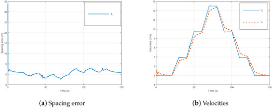 - The spacing errors decrease which guarantee string stability as shown in Figure 8a,