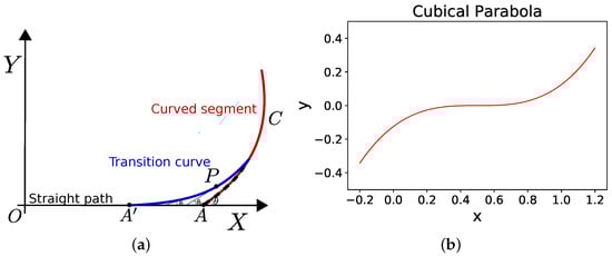 Similarly, Figure 9c shows using a clothoid in red color for smooth transition from point to to meet the curve in blue color. Authors in [117] have described using transition curves for mobile robot navigation applications.
