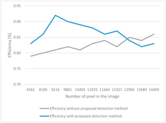 First of all, we made a test that uses a convolutional neural network without detection. The efficiency was about 80%. Again, for classic classifiers such as k-nearest neighbors (KNN) and support vector machine (SVM), the results were similar. In both cases, the proposed detection technique increased the value of effectiveness. However, the highest results were obtained for the proposed technique along with a convolutional neural network.