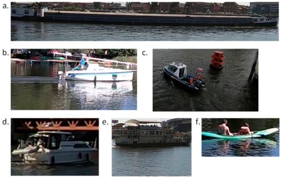 Sample examples of images: (a) barge; (b) yacht; (c) marine service; (d) motorboat; (e) passenger; and (f) other.