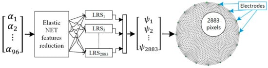 The selection of the number of input parameters was estimated separately for each pixel. Figure 3 shows the workflow of the EIT system, converting the input electrical measurements into the output image.