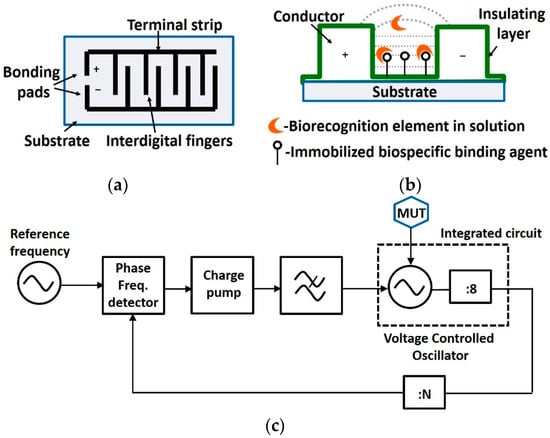 - Nehring, J.; Bartels, M.; Weigel, R.; Kissinger, D. A permittivity sensitive PLL based on a silicon-integrated capacitive sensorfor microwave biosensing applications. In Proceedings of the 2015 IEEE Topical Conference on Biomedical Wireless Technologies, Networks, and Sensing Systems (BioWireleSS), San Diego, CA, USA, 25–28 January 2015. [Google Scholar]