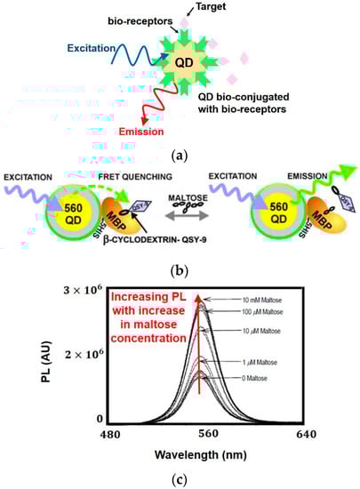 - Sapsford, K.; Pons, T.; Medintz, I.; Mattoussi, H. Biosensing with Luminescent Semiconductor Quantum Dots. Sensors 2006, 6, 925–953. [Google Scholar] [CrossRef]