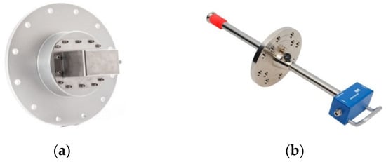 UHF sensors applied in a power transformer: (a) internal UHF sensor; (b) Omicron UVS 610 UHF valve sensor [].