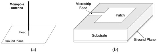 Typical antenna structure: (a) monopole antenna; (b) microstrip antenna.