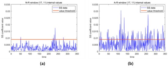 (a) N-R window (17, 11) SS coefficients of a training dataset, (b) A-R window (17, 11) SS coefficients of a training dataset.
