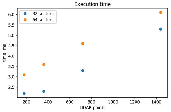 For a sector with no points or with a very small number of points, the maximum scan distance is set, meaning that there are no obstacles in this sector. The reason for this rule is to avoid dust problems inside the tunnel, otherwise sporadic false detections caused by the dust will be considered as real obstacles.