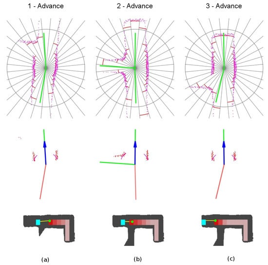 An obstacle avoidance algorithm improves the performance of the system because in addition to avoiding collisions, it keeps the vehicle more centered inside the tunnel. The exploration vectors also tend to center the vehicle due to the weighted azimuth calculated in Equation (6), but this centering action can be insufficient in some situations.