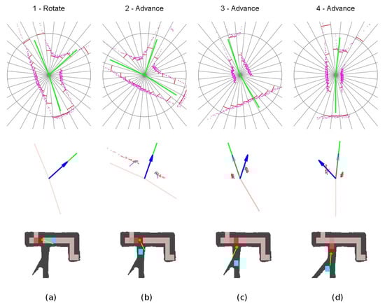 Dead end secuence of events (a) Location 1. (b) Location 2. (c) Location 3. (d) Location 4.