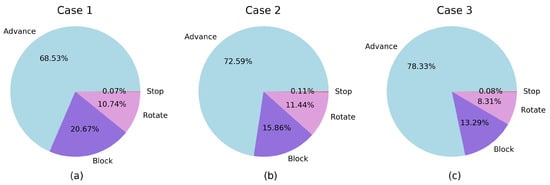 Relative time elapsed in each mode. (a) Case 1. (b) Case 2. (c) Case 3.