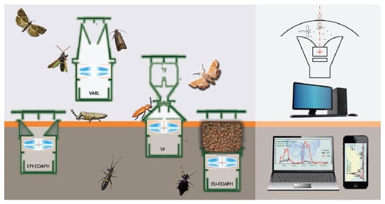 - Dombos, M.; Kosztolányi, A.; Szlávecz, K.; Gedeon, C.; Flórián, N.; Groó, Z.; Dudás, P.; Bánszegi, O. EDAPHOLOG monitoring system: Automatic, real-time detection of soil microarthropods. Methods Ecol. Evol. 2017, 8, 313–321. [Google Scholar] [CrossRef]