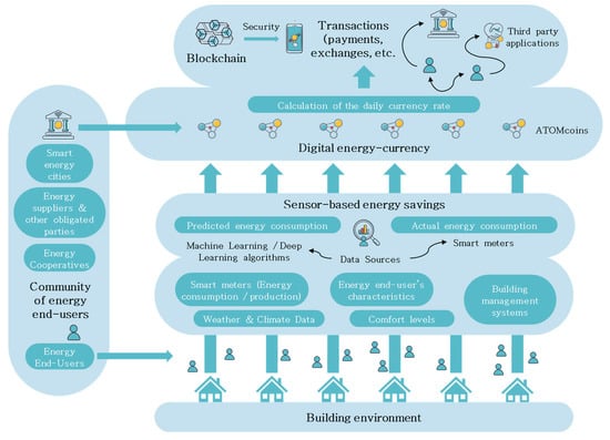 The proposed reward scheme could be implemented by the local and regional authorities, as well as energy suppliers, utilities and other obligated parties, or even energy cooperatives. AI algorithms, like neural networks, machine learning and deep learning can be combined with sensors to identify energy consumption patterns at the household level, thus leading to the calculation of the actual energy savings. These savings are then converted to ATOMcoins and distributed to the end-users according to their energy efficiency performance. Transactions, like payments and exchanges, based on the digital energy currency can be monitored and registered on secure databases, exploiting the opportunities provided by blockchain technology.