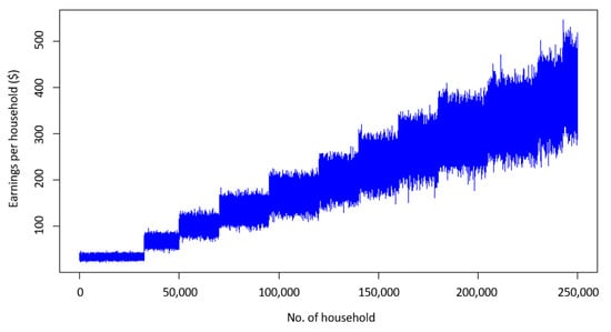Monetary gain for each household.