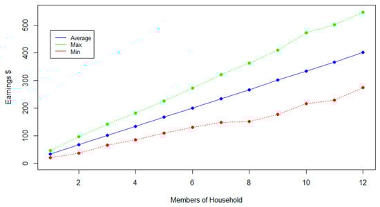 Cumulative monetary gain of a household with six members.