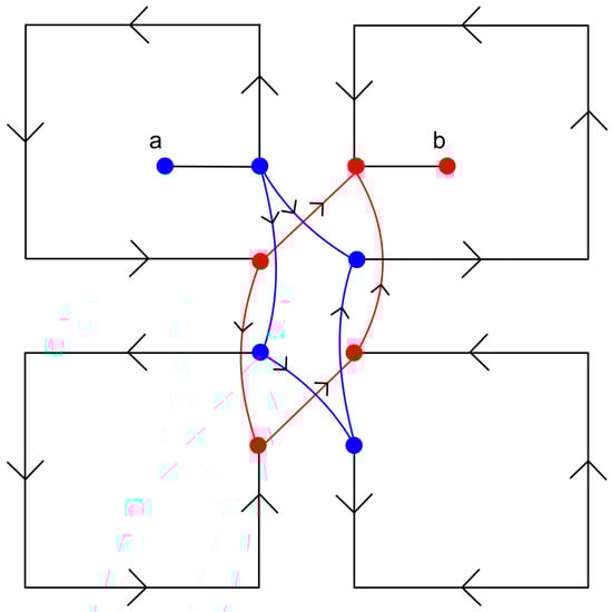 Crossed parallel sub-loop inductors with current flow directions from node a to node b.