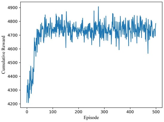 To verify the effectiveness of the proposed scheme, the transmission and convergence performance of the proposed scheme is simulated. Table 1 summarizes important parameters in the simulation setup. The parameters in Table 1 are divided into two parts, one part is communication-related parameters [,,] and the other part is reinforcement-learning-related parameters [].