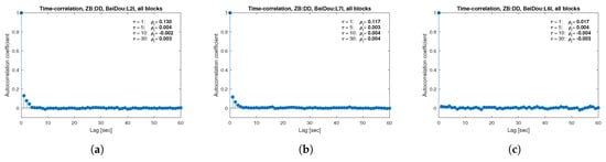 The time- and cross-correlation were determined based on the ZB DD observation time series analysis. To determine the time correlation, the autocorrelation function (ACF) for time series was used that measures the correlation between and of stochastic process given by []: