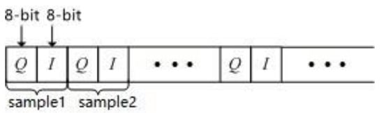 The received data of the array stored in the system are baseband signals (including I-channel and Q-channel) after down-conversion. The specific format of the sampled data is shown in Figure 5. Each sample contains 8-bit Q and 8-bit I, occupying a total of 16 bits of storage space. At the same sampling point, the first part is Q and the second part is I.