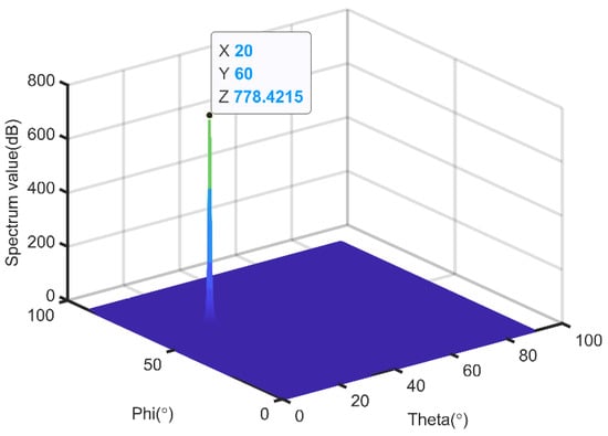 In this test, we read the baseband signal data through the computer, and then performed DOA estimation with the traditional MUSIC algorithm and our algorithm, respectively. The running result of the traditional MUSIC algorithm is shown in Figure 6.