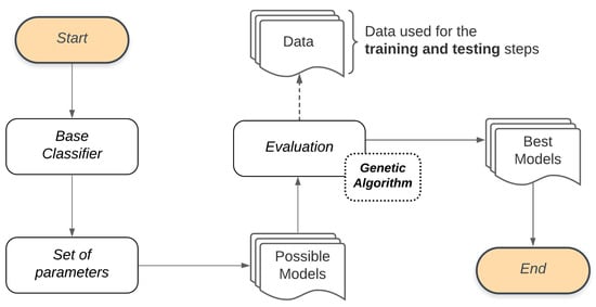 The most widely used approach to model selection is cross-validation selection, which can be described as “try all models and choose the one that produces the best result” []. This approach, however, requires an exhaustive search among all the options of model configurations. Several times, the researcher performs these configurations manually varying such parameters []. The choice of the best configuration of a classifier can be made by combining (by selection or fusion) classifiers in several ways. In this sense, we have the techniques of Bagging, Boosting, Staking, and Bucket of Models.