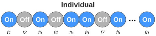 A Genetic Algorithm is an evolutionary algorithm that generates solutions of search problems using techniques inspired by the natural evolution of species []. Solutions based on genetic algorithms usually generate several populations of individuals based on evolutionary strategies, such as heredity, mutation, and natural selection []. In this work, we used a Genetic Algorithm that combines all these techniques.