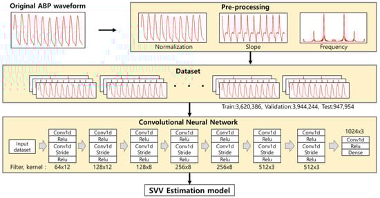 Therefore, in this study, we aimed to build a novel model using the CNN technique to estimate SVV, utilizing the arterial blood pressure (ABP) waveform as the input data and SVV estimated via ABP-based commercialized SVV predicting models as a reference (EV1000).