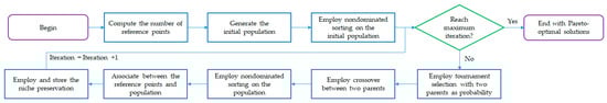 Workflow of the NSGA-III algorithm.