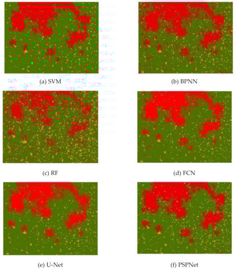 4.1. The Comparison of SVM, RF, BPNN, FCN, U-Net, and PSPNet