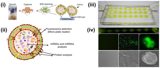 - Liu, F.; Vermesh, O.; Mani, V.; Ge, T.J.; Madsen, S.J.; Sabour, A.; Hsu, E.-C.; Gowrishankar, G.; Kanada, M.; Jokerst, J.V.; et al. The Exosome Total Isolation Chip. ACS Nano 2017, 11, 10712–10723. [Google Scholar] [CrossRef]