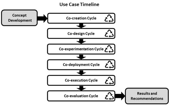 Different use cases were co-created with the different stakeholders based on the issues that prompted major challenges and for which there was a lack of commercial solutions. During this stage, we also identified the different user personas that will mirror the target users of the different use cases. A user persona is a fictional character that is used to communicate in a more straight forward manner the key motivations, concerns and interest of a group of users, represented in the shape of that character []. Each of the identified personas will be described based on attributes, attitudes, behaviours and characteristics. The use case, on the other hand, are used to describe how these user personas will use the different digital solutions. The use case considers human–computer interaction and for that reason aspects such as usability or usefulness should be considered. The document in [] summarizes the result of this stage, in which the co-created personas and use cases are described.