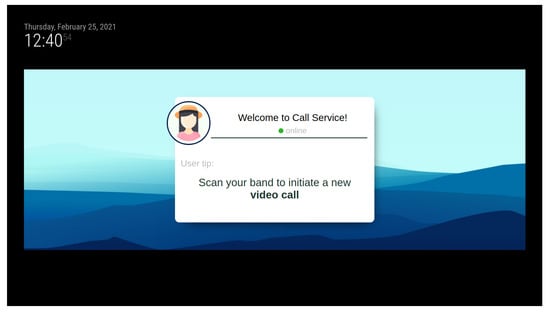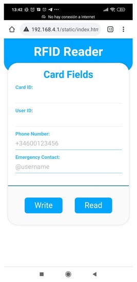 This is an intuitive systems that requires very little interaction from the user, other than approaching the band and, in some cases, select the contact they want to call. Figure 6 shows the interface displayed in the smart mirror, requesting the band to be scanned in order for the call to start. Additionally, the process of burning information in the smart band is also very simple and intuitive. The device shown in Figure 7 has been designed to simplify the process. The QR code should be scanned with a smartphone. This opens a very simple interface, like the one depicted in Figure 8. When the smart band is placed in the labelled square and the information has been provided to the appropriate field, by pressing the write button the information will be written to the band.