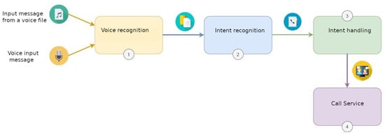 The call service described here is therefore intended to address social isolation, in general, but particularly that suffered under a pandemic context (A short video can be seen in the following link showing the use of the call service: https://youtu.be/cin620HIkSQ [accessed on 24 November 2021]). The SHAPES smart mirror platform provides a perfect platform for video-conference purposes since it can handle both video and audio. Efforts have been therefore addressed to provide a call service that puts the focus on ensuring the acceptance and satisfaction of the older adult population. Following a co-designed approach, different participants and experts from the SHAPES project were involved through the different iterations of the design, implementation, and testing phases. This has ensured the usability, user acceptance and satisfaction of the resulting technology. The result is a video-call service built upon the Telegram network (https://telegram.org/z/ [accesed on 7 May 2021]). This service offers an interface specifically designed to run on the smart-mirror platform in such a way that minimum interaction is required to start a call. Although all functionalities of Telegram would be available, the focus has been made in providing a video-call service.