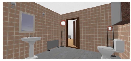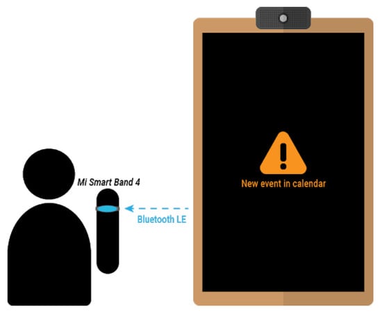 The smart mirror, therefore, acts as a gateway, collecting data and determining whether a fall has been detected or not (Video illustrating the use of the fall detector: https://youtu.be/8Zn43OqBd1w [accessed on 15 October 2021]). If a failure is detected, the smart mirror notifies the user’s emergency contact via the call service (see Section 3.3.1). This enables prompt response to the fall, even in cases of disorientation or loss of consciousness of the victim. As this solution uses BLE, it is intended to monitor a person in the same environment in which the mirror is placed, as BLE has a limited range of approximately 5 m. The coverage range of BLE technology depends on the type of device. In general, devices used to monitor users in real time use class 2 devices, whose range is between 5 and 10 m. If a class 1 BLE device were used (which do have a range of 100 m) the sensor consumption would increase from 2.5 mW to 100 mW, so in these types of devices, in which energy efficiency is very important, class 2 is usually used. It is also possible to use coverage extenders if necessary. The system’s operation is shown in Figure 9.