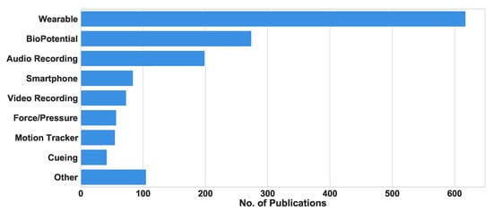 Our review and other surveys of the PD literature [,,,] reveal that researchers use a number of device types and technologies in the application areas presented in the previous section. Using the current literature, we classify these devices into the following eight categories based on the device form factor and sensing modalities.