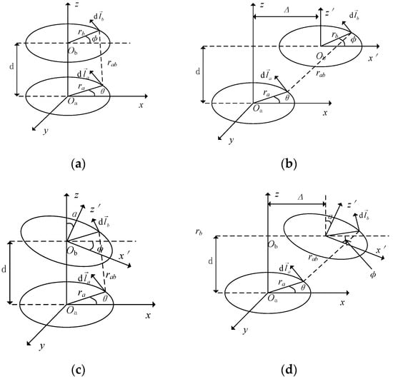 The magnetic field distribution of this coil is deduced by Maxwell’s equations and Bio–Savart (Equation Figure 5 and Equation Figure 6) [,,,,,].