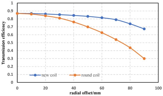 Transmission efficiency and anti-offset capability of the new coil under different loads.