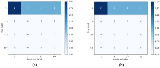 Example of separated confusion matrix obtained after the classification of layer 2. (a) Euclidean kernel. (b) Cosine kernel.
