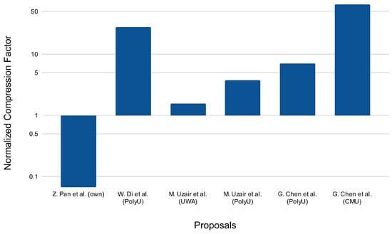 Normalized compression factor with respect to our proposal [,,,].