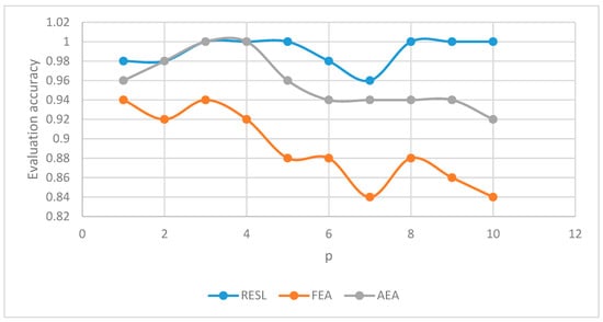 Plot Table 1 as Figure 2. It can be seen from Figure 2 that the evaluation accuracy of RESL is much higher than that of FEA and slightly higher than that of AEA.