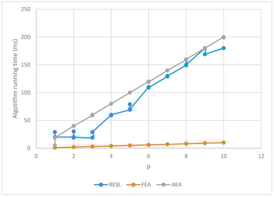 Plot Table 2 as Figure 3. It can be seen from Figure 3 that the algorithm running time of RESL is lower than AEA but higher than FEA.
