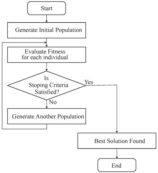 The GA is a method that imitates the evolution of species []. The basic idea is that the species suitable for the present environment tend to survive to the next generation. To apply this mechanism for optimization, the GA models the solutions as individuals represented as a gene. An individual (gene) has a fitness value, which should have a higher value so it can be considered a better solution.