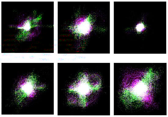 This study employs a  to learn the relationship between the cloud shapes and patterns in the chaogram image and the heart functioning condition. Since the size of the PhysioNet dataset is relatively small, the training of a deep neural network with a considerable number of variables is impossible since the risk of overfitting is unavoidable. Therefore, pretrained networks are recommended based on a transfer learning () scheme. Hence, the chaogram images had to be of the same size as the input data admitted by the employed model. Hence, the size of the chaogram images must be equal to the input size admitted by the used VGG DCNN model, which is a   image, if it is intended to employ it as a pretrained model. Figure 6 shows the chaogram images of the 6 PCG samples shown in Figure 4.