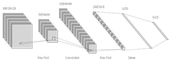 The signal-processed data were sent to the convolutional neural network as input data for training. The convolutional neural network of the present study is shown in Figure 12.